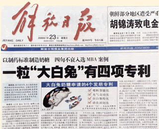 2006年,大白兔奶糖申請了4個發(fā)明專利,這4各專利是冠生園立足傳統(tǒng)創(chuàng)新生產工藝的結晶。