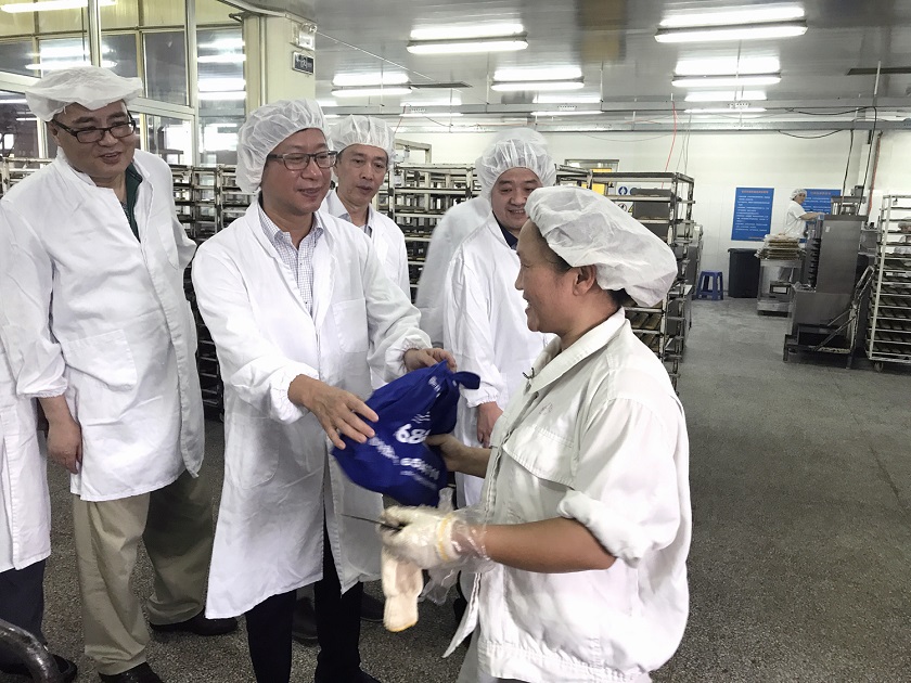 8月4日,梅林股份總裁王國(guó)祥,梅林股份副總裁、冠生園總經(jīng)理藍(lán)雪,冠生園副總經(jīng)理吳堅(jiān)等一行冒著高溫到冠生園益民公司和華佗公司,慰問(wèn)正在炎熱高溫下忙碌生產(chǎn)的職工,并送上慰問(wèn)品。
