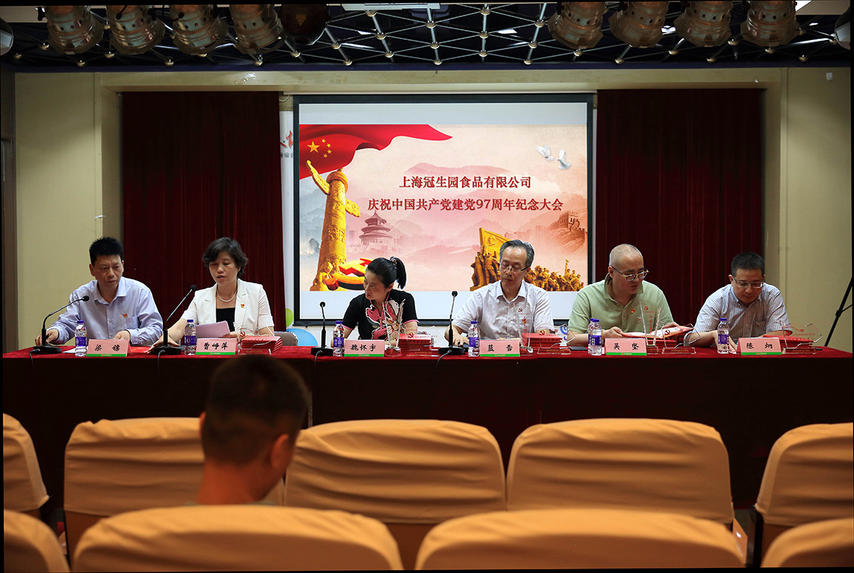 大會在雄壯的《中華人民共和國國歌》聲中拉開帷幕,現(xiàn)場氣氛莊重而熱烈,廣大黨員干部群情振奮、掌聲四起。首先觀看了主題為《新時代、新?lián)?dāng)、新作為》黨建風(fēng)采視頻短片,短片圍繞“不忘初心、奮勇前進(jìn)”“凝心聚力、共謀發(fā)展”“文化引領(lǐng)、鑄就輝煌”三個篇章,全面總結(jié)和回顧了冠生園近兩年來緊緊圍繞經(jīng)濟(jì)工作大局扎實開展黨建工作所取得的成績和榮譽。隨后,冠生園黨委副書記、人力資源部經(jīng)理曹崢萍宣讀了冠生園黨委關(guān)于命名表彰紅旗黨組織、優(yōu)秀基層黨支部、黨建品牌課題、黨員先鋒崗的決定和先進(jìn)名單。