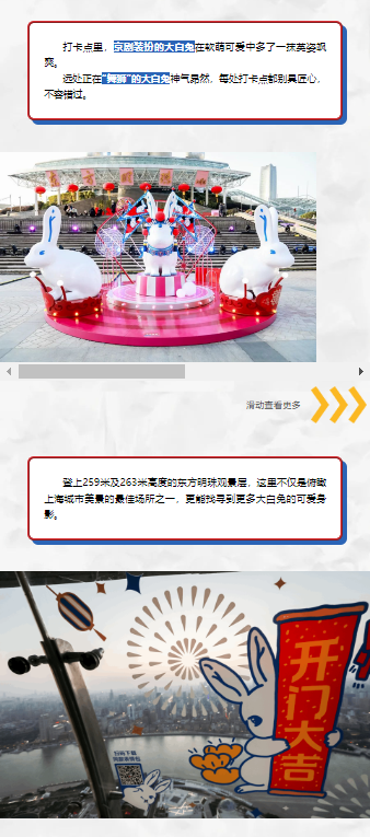 2023年1月17日——2月15日,“大白兔”攜手上海城市明星地標東方明珠廣播電視塔 聯合呈現“大白兔點亮東方明珠”新春活動 希望在兔年之際,用快樂和甜蜜點亮城市、點亮新一年的希望與快樂。